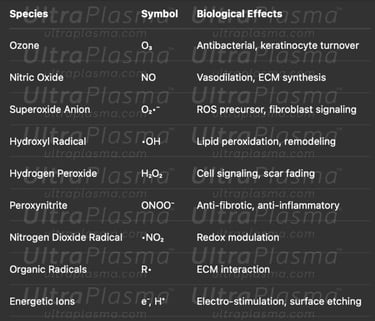 UltraPlasma™ technology offers a differentiated therapeutic approach through customizable depth and plasma composition. Unlike ablative lasers or monotherapy devices, its triple-mode design allows precise control of oxidative stress, cellular modulation, and structural remodeling. Combined RONS dynamics yield comprehensive antifibrotic, vasoregulatory, and regenerative benefits.